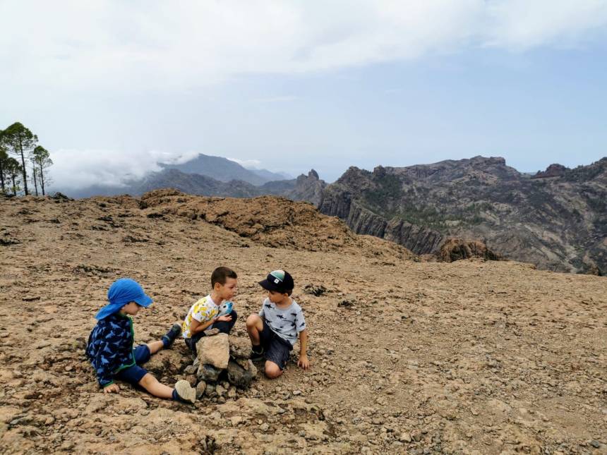 Dad’s friends just moved from Germany to Las Palmas with 5 year old twins and a 4 year old boy. Add my brother Sojourn (6) and that is a whole lot of little kids to herd along the trail. It’s a good thing I’m training to be a babysitter. We have been loving the beach, but missed the trees. So we hit the mountains to smell the pine sap. I love the smell of christmas and the crunch of the pine needles and everyone was ready for a break from the heat.
