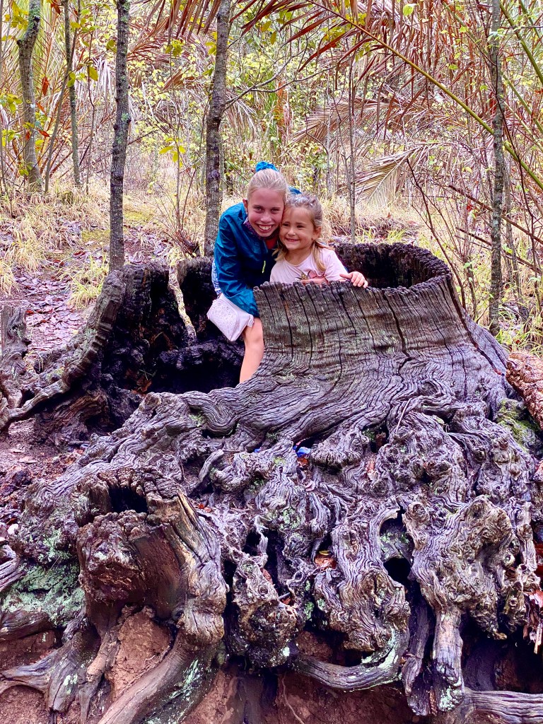 We could not enter the old finca as it was closed on Sunday so we moved on. The trees towered overhead creating a beautiful tunnel. We even found a hollow tree in a clearing so big I could climb up inside it. But it was muddy from the rain that morning and my shoes were too slippery. I might have pulled it off, but mom looked worried and I got nervous. On a dry day, I bet I could make it to the top. There are all kinds of places to explore. Bring a picnic and some toilet paper, because there isn’t anything once you start exploring.