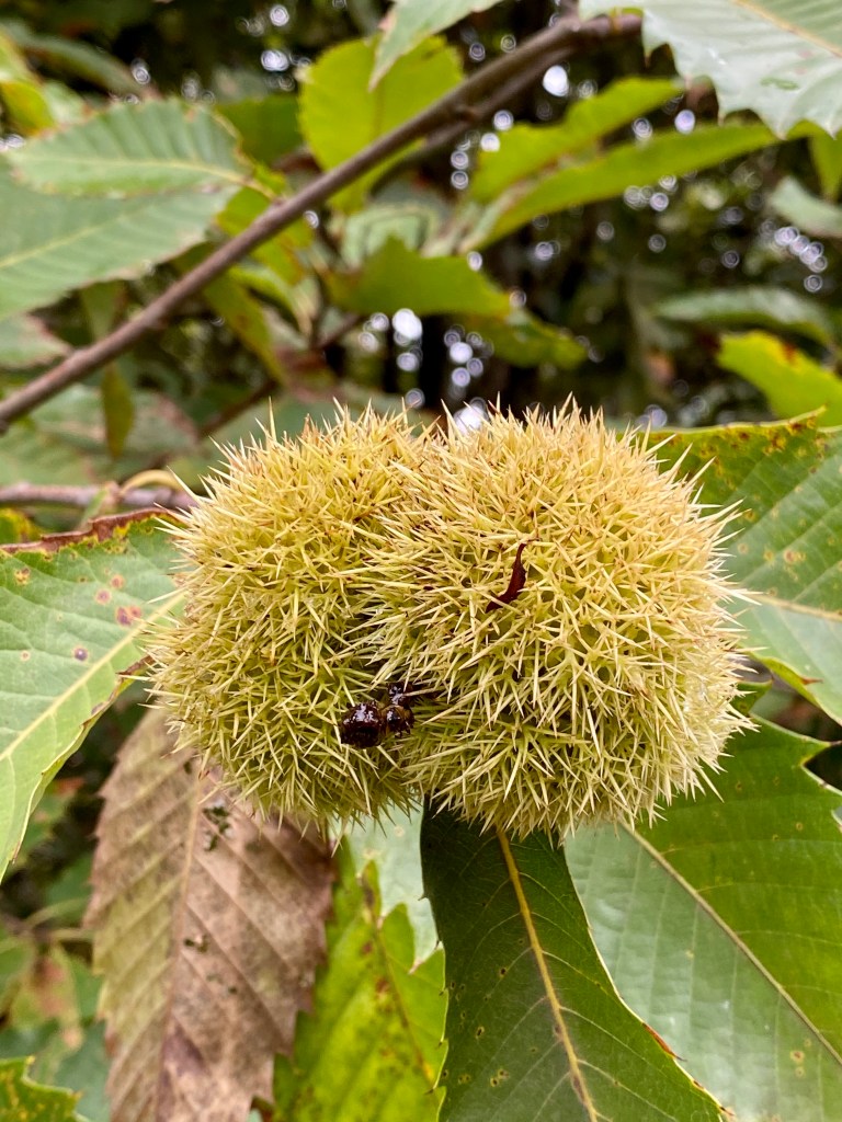 Tiny pink flowers that smell divine to giant pokeball (chestnuts) you roast at Christmas. Weird orange mushrooms. Big ol’ cactuses. All kinds of palm trees. Careful if you walk into the fields, they are real muddy.
