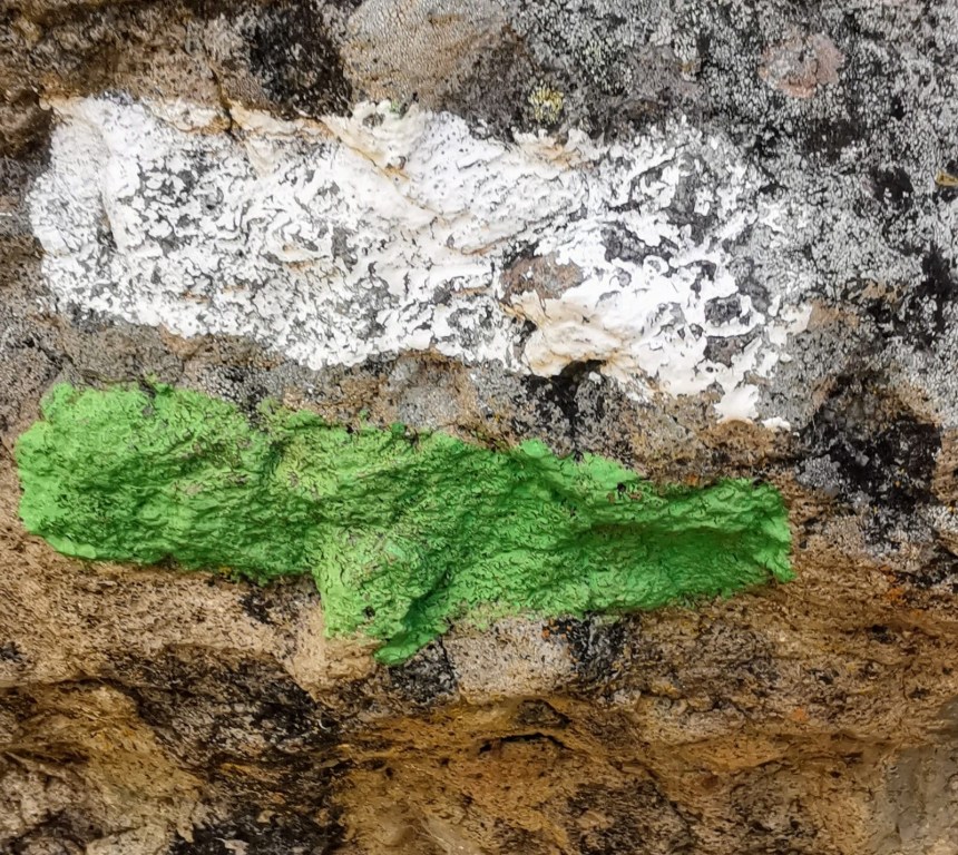 The trail was marked with painted lines on rocks, cliff sides, and it was a bit of a scavenger hunt to find them. Keep a sharp eye.