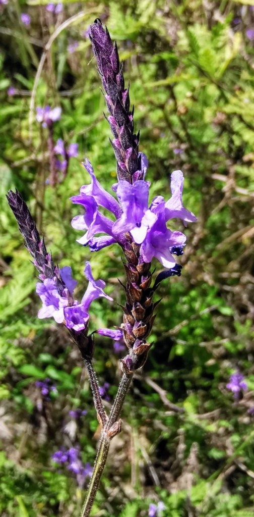 We started at the church square and then walked down from the small town into a canyon. I saw all kinds of pretty flowers and plants. The temperature was warm then cool then warm depending on where the sun was facing. Even dad got chilly and wished he had more than his t-shirt. Bring layers, you will need them. The rain also came and went a couple times towards the end of our hike, so… be prepared.