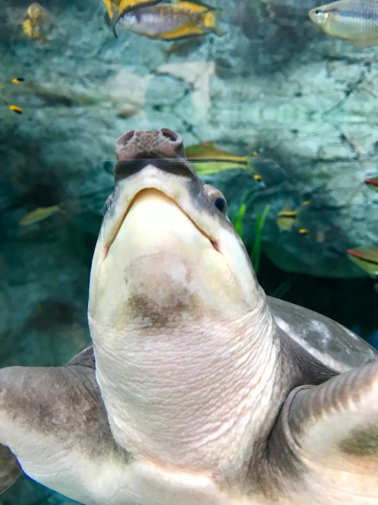 Towards the beginning of the aquarium you see the crocodiles and the big nose turtle.