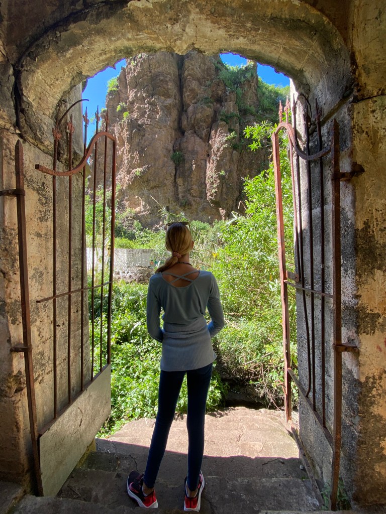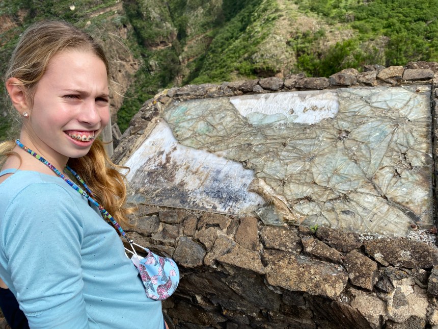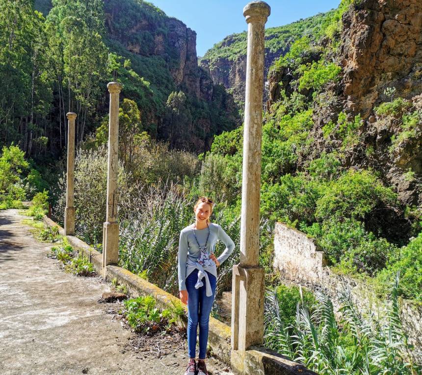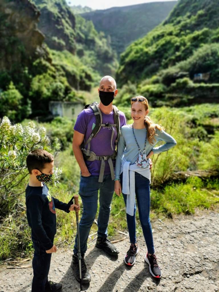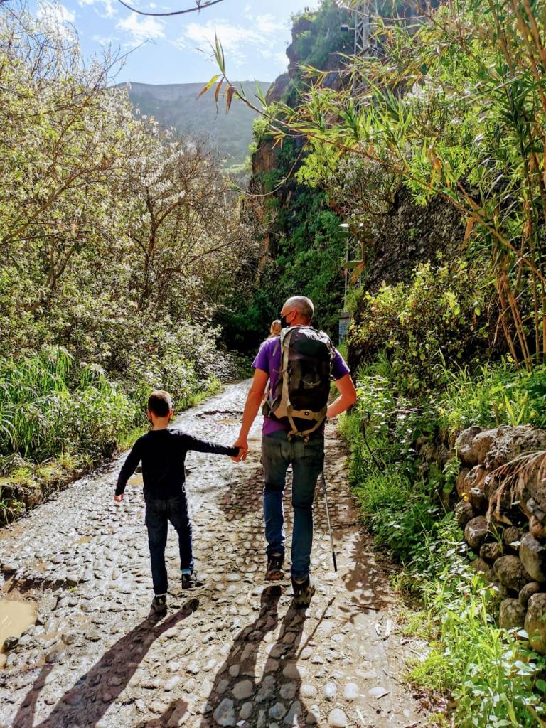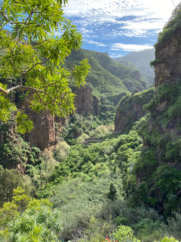 It takes about 25 minutes from Las Palmas to the trailhead for the Barranco de Azuaje. Take Highway 2 along the north coast, then the gentle curves up the mountain along the 75 to the 350. No need to rush this one and no one will get car sick. While you can technically drive off the main highway to the trail head, it is a very narrow 1 way and we saw many people get stuck. Better to just park on the side of the highway and walk the small road in. It is easy to recognize as the turnoff is on one side of a narrow 1 lane bridge. The Parking here is a bit wild, so please be careful.