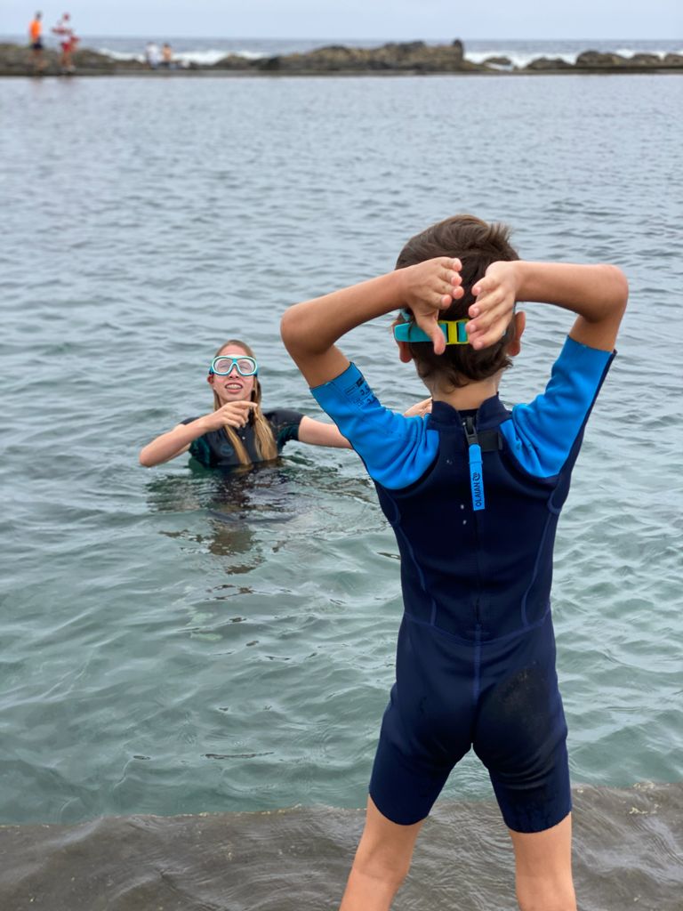 They call them “natural pools” in Spanish. Which is weird because they are totally man made. Banaderos is the first real beach side town on the north coast of Gran Canaria after Las Palmas. It has a cute little boardwalk with a couple restaurants and these great swimming holes. They are large pools that filled with salt water at high tide and are calm and lovely at low tide.. It even had some fish in the water. It was fun to swim in them, but there was not a lot to look at, unlike fish corner in Pena la Vieja. Perfect place for a hot day.